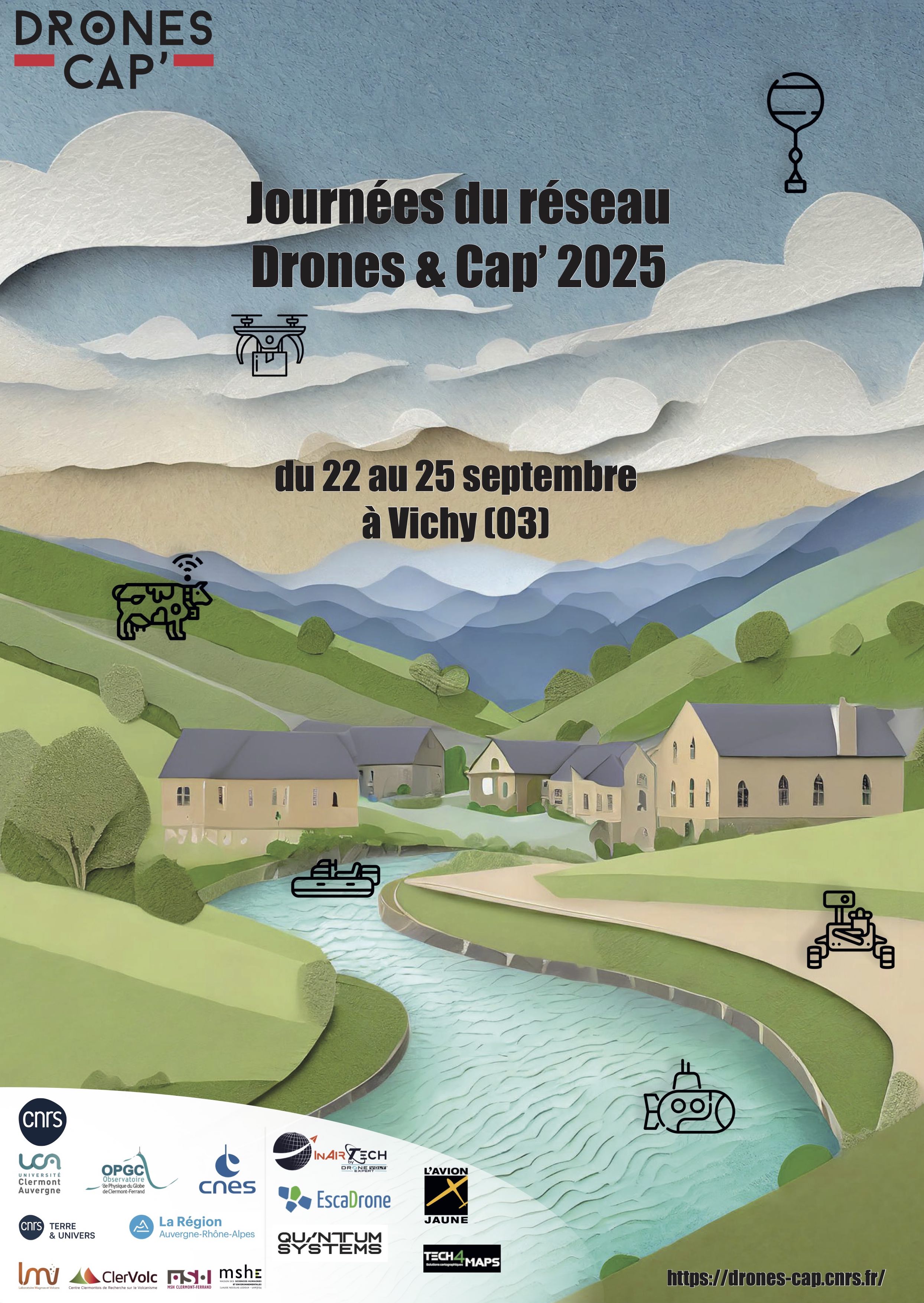 Les prochaines journées du réseau Drones&Cap’ se dérouleront à Vichy (03) du lundi 22 au jeudi 25 septembre 2025.