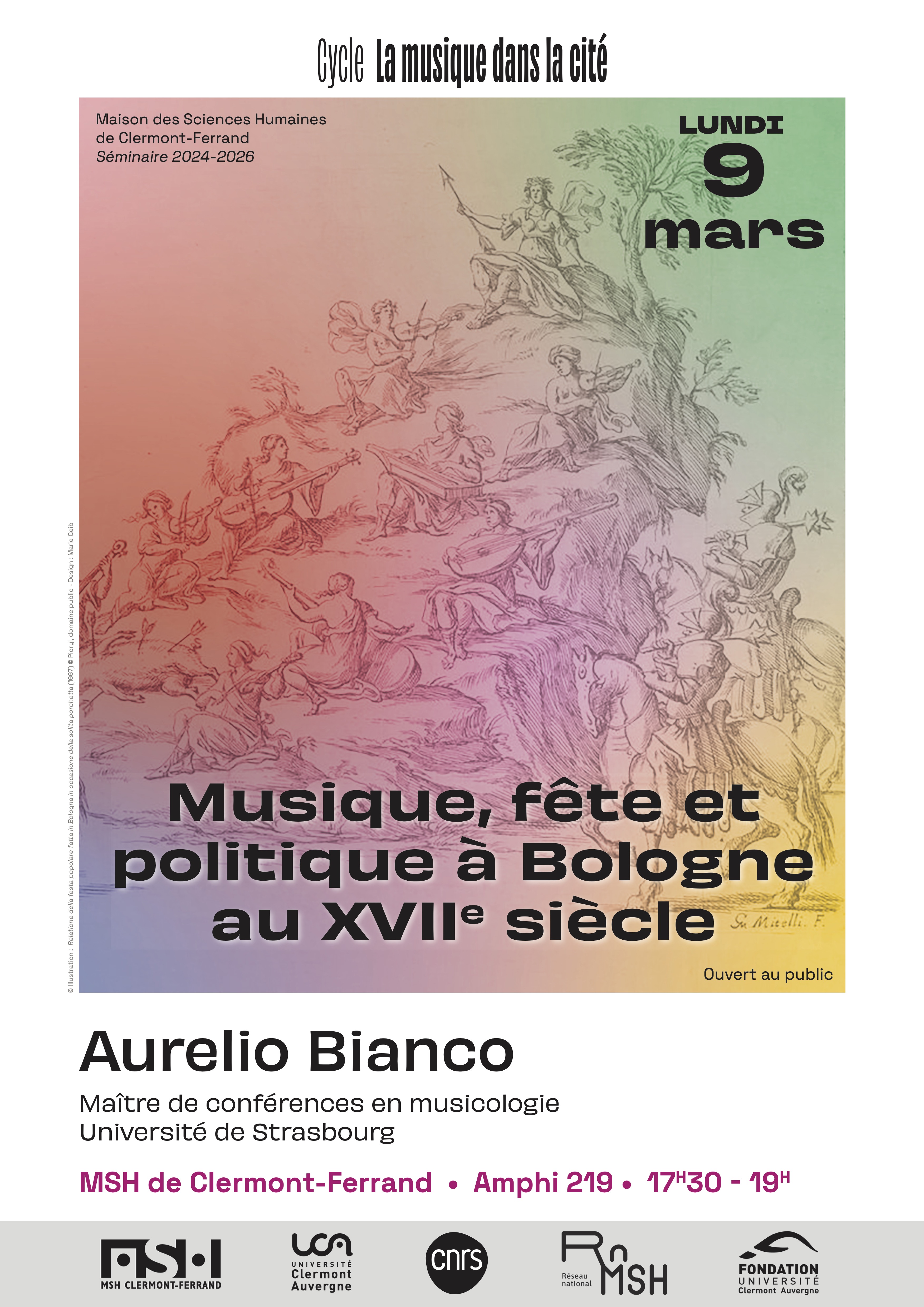 Aurelio Bianco est Maître de conférences en musicologie à l'Université de Strasbourg. Il coordonne le groupe de travail sur « Felsina resonans : musiques et spectacles dans la Piazza Maggiore de Bologne / Les sons de Gonzague : musiques et spectacles à la cour mantouenne » au CREAA (Centre de Recherche & d'Expérimentation sur l'Acte Artistique).